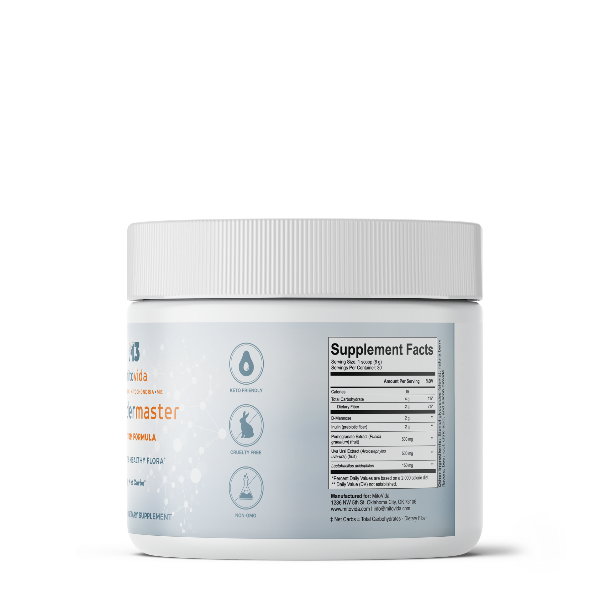 Introducing BladderMaster, a specialized formula designed to support urinary tract health and promote overall well-being. This powerful blend combines D-Mannose, Pomegranate Extract, Inulin, Lactobacillus, Uva Ursi, and Stevia to create a natural solution that helps maintain a healthy urinary tract while restoring and supporting your body’s beneficial flora. Each ingredient has been meticulously selected for its unique properties, providing you with comprehensive support against urinary tract infections (UTIs) and promoting optimal bladder function. With its natural anti-inflammatory and antimicrobial benefits, BladderMaster empowers you to feel comfortable and confident every day.