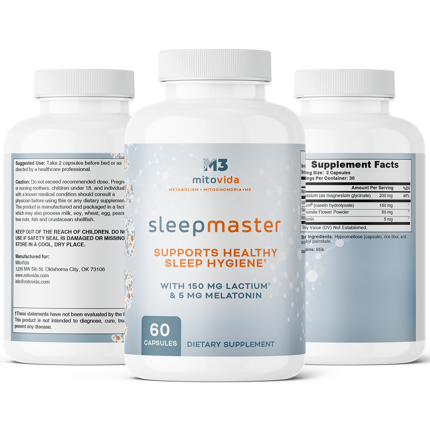 Transform your nightly routine with SleepMaster, the ultimate sleep support formula designed to help you achieve deep, restorative sleep. This exceptional blend combines Magnesium Glycinate, Lactium, Melatonin, and Chamomile Flower Extract to create a powerful synergy that promotes relaxation, calms the nervous system, and balances your sleep-wake cycle. When life gets hectic and stress takes over, SleepMaster provides the natural support you need to unwind and drift off to a peaceful slumber, allowing you to wake up rejuvenated and ready to take on the day.